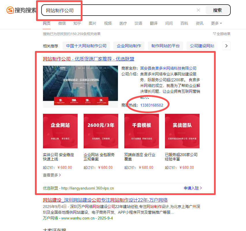 搜狗優(yōu)選聯(lián)盟建議做,但它只是“流量入口的錦上添花”,不是核心。。如果一年只挑3-5個核心業(yè)務+地區(qū)詞來做(比如“北京網(wǎng)站建設"企業(yè)網(wǎng)站建設"),我覺得投入是劃算的。